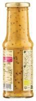 Wasser, Sonnenblumenöl*, Agavendicksaft*, Blütenhonig* 6,7 %, Branntweinessig*, Dijon SENF* 5,3 % (Wasser, Branntweinessig*, braune SENFSAAT*, Meersalz), braune SENFSAAT* 2,7 %, Meersalz, Maisstärke*, Zwiebeln*, Knoblauch*, Koriander*, schwarzer Pfeffer*, Paprika edelsüß*, Karottensaftkonzentrat*, Sonnenblumenkernmehl*, Verdickungsmittel: Guarkernmehl*.| Energie | Fett | gesättigte Fettsäuren | Kohlenhydrate | Zucker | Eiweiss | Salz |
